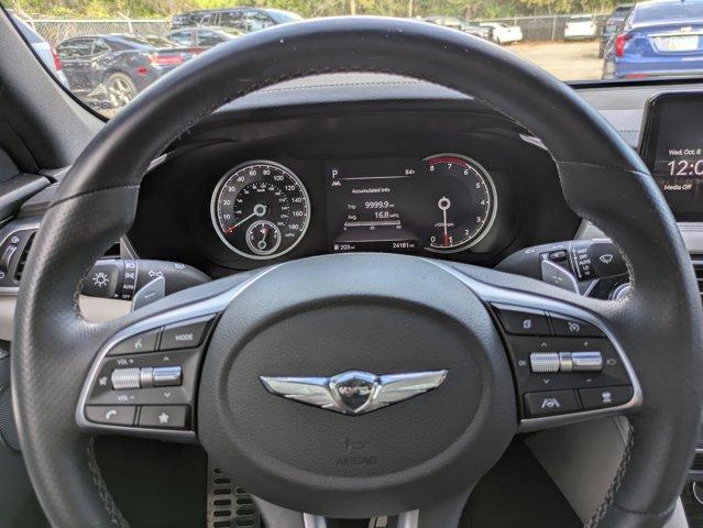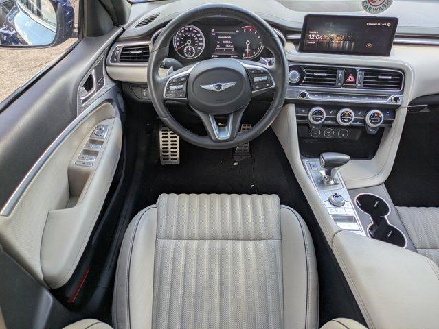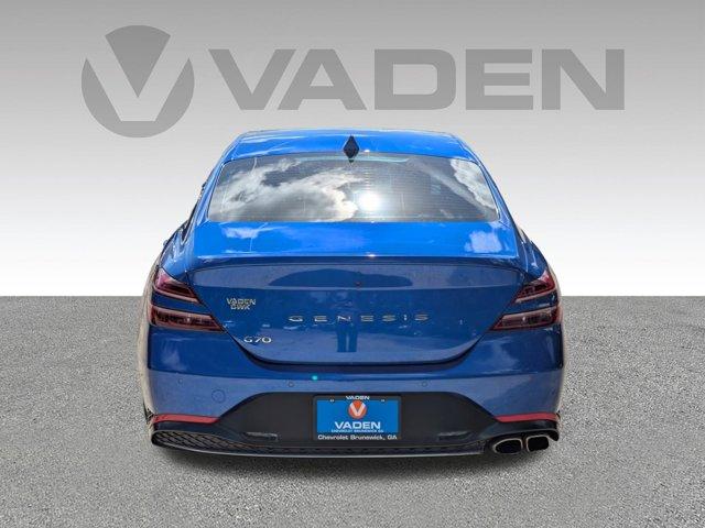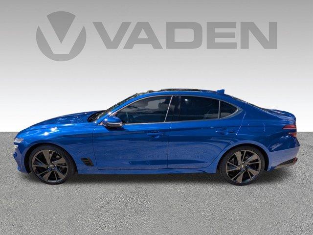 CARFAX One-Owner. Clean CARFAX. 2023 Genesis G70 2.0T Odometer is 14587 miles below market average! CAR FAX 1 OWNER, BLUETOOTH/HANDS FREE PHONE, REMAINDER OF FACTORY WARRANTY, CLEAN CARFAX, SIRIUS XM SATELLITE RADIO, NAVIGATION, POWER PACKAGE, BACKUP CAMERA, HEATED SEATS, PREMIUM WHEELS, SUNROOF, NAVIGATION SYSTEM NAV GPS, SOUND PACKAGE - SIRIUS XM SATELLITE RADIO, 4-Way Power Lumbar Front Passenger Seat, Acoustic Front Door Glass, Alloy Pedals, Dark Chrome Grille & Daylight Opening Trim, Forward & Reverse Parking Distance Warning, Front Passenger Seat Walk-In Device, Integrated Memory System (IMS), Leather Seating Surfaces, Navigation System, Option Group 02, Power Folding ECM Outside Mirrors, Power Telescoping Steering Wheel, Radio: AM/FM/SiriusXM/HD Lexicon Prem Audio System, Rain-Sensing Wipers, Sport Aluminum Trim, Sport Prestige Package, Ventilated Front Seats, Wheels: 19" x 8.0J Fr & 19" x 8.5J Rr Sport Alloy, Wide Sunroof, Wireless Device Charging. Vaden is pleased to offer this Mallorca Blue 2023 Genesis G70 2.0T with Obsidian Black/Sandstorm Gray Leather... Beautifully equipped with Sport Prestige Package (4-Way Power Lumbar Front Passenger Seat, Acoustic Front Door Glass, Alloy Pedals, Dark Chrome Grille & Daylight Opening Trim, Forward & Reverse Parking Distance Warning, Front Passenger Seat Walk-In Device, Integrated Memory System (IMS), Leather Seating Surfaces, Option Group 02, Power Folding ECM Outside Mirrors, Power Telescoping Steering Wheel, Radio: AM/FM/SiriusXM/HD Lexicon Prem Audio System, Rain-Sensing Wipers, Sport Aluminum Trim, Ventilated Front Seats, Wheels: 19" x 8.0J Fr & 19" x 8.5J Rr Sport Alloy, Wide Sunroof, and Wireless Device Charging), Navigation System, 4-Wheel Disc Brakes, 6 Speakers, ABS brakes, Air Conditioning, Alloy wheels, AM/FM radio: SiriusXM, Android Auto & Apple CarPlay, Anti-whiplash front head restraints, Auto High-beam Headlights, Auto-dimming Rear-View mirror, Automatic temperature control, Brake assist, Bumpers: body-color, Delay-off headlights, Driver door bin, Driver vanity mirror, Dual front impact airbags, Dual front side impact airbags, Electronic Stability Control, Emergency communication system: Genesis Connected Services, Exterior Parking Camera Rear, Four wheel independent suspension, Front anti-roll bar, Front Bucket Seats, Front Center Armrest, Front dual zone A/C, Front reading lights, Fully automatic headlights, Garage door transmitter: HomeLink, Heated door mirrors, Heated front seats, Heated Multi-Adjustable Front Bucket Seats, Illuminated entry, Knee airbag, Leatherette Seating Surfaces, Low tire pressure warning, Occupant sensing airbag, Outside temperature display, Overhead airbag, Overhead console, Panic alarm, Passenger door bin, Passenger vanity mirror, Power door mirrors, Power driver seat, Power passenger seat, Power steering, Power windows, Radio: AM/FM/SiriusXM/HD Audio System, Rear anti-roll bar, Rear reading lights, Rear seat center armrest, Rear window defroster, Remote keyless entry, Security system, Speed control, Speed-Sensitive Wipers, Split folding rear seat, Steering wheel mounted audio controls, Tachometer, Telescoping steering wheel, Traction control, Trip computer, Turn signal indicator mirrors, Variably intermittent wipers, and Wheels: 19" x 8.0J Fr & 19" x 8.5J Rr Alloy! Approved customer communicated additions (repairing minor cosmetic flaw, added accessories, etc.) Prior to delivery will be subject to additional charges. ***All of Our Vaden New Car Pricing is Transparent, the price you see is the price you pay!!****